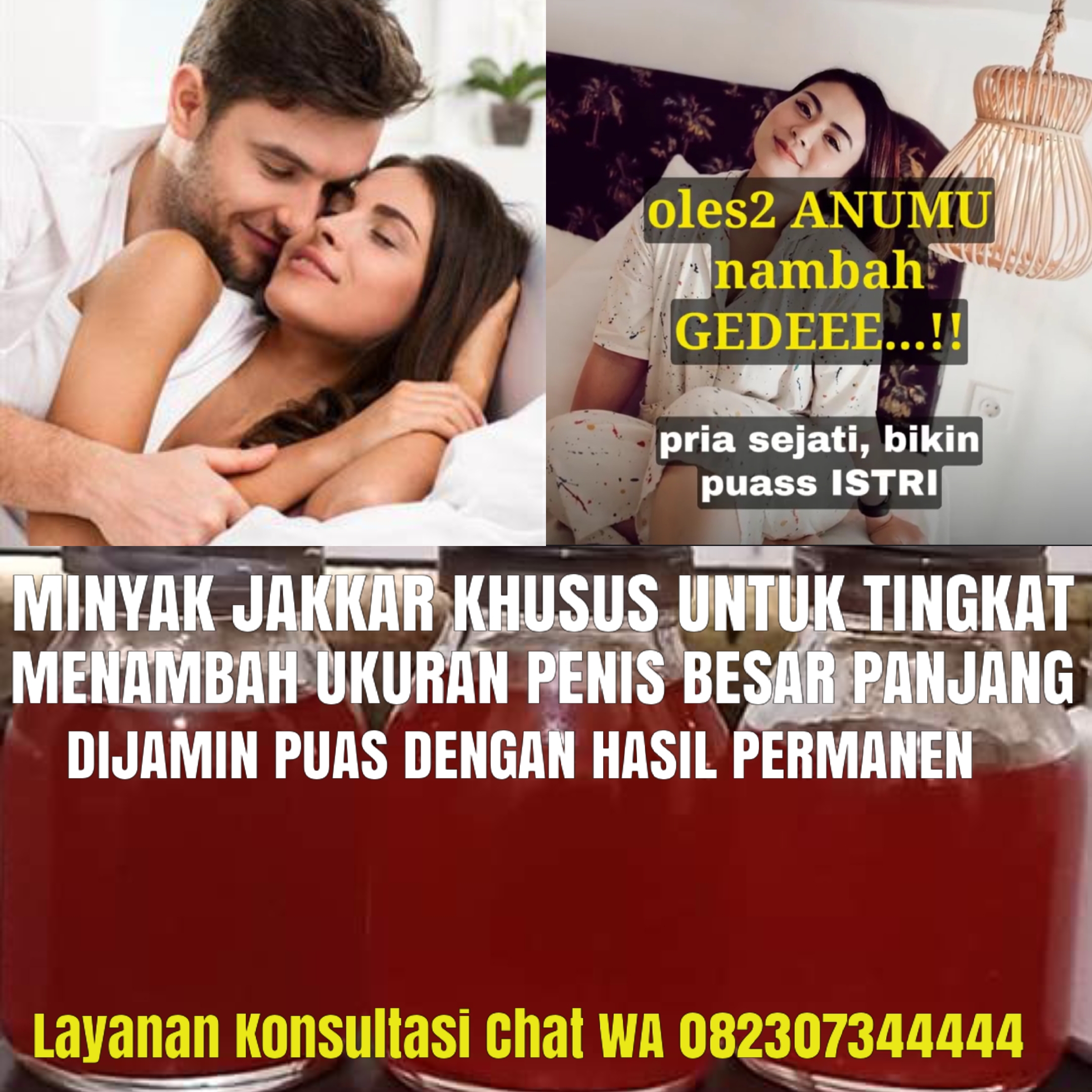 Panjang 15cm, Besar Diameter 3 cm Panjang 16cm, Besar Diameter 4 cm Panjang 18cm, Besar Diameter 5 cm Panjang 20cm, Besar Diameter 6 cm Bisa Menjadikan besar dan Panjang Bisa Keras dan Tahan lama Ingat! No.suntik slikon dan Bahan berbahaya Selain itu kami menawarkan jalan keluar untuk anda yang memiliki masalah kurang percaya diri sehingga tidak bisa memberikan yang terbaik dalam berhubungan bersama pasangan anda. Semua akan diatasi melalui pengobatan alat vital dengan menggunakan teknik pengobatan yang sangat Mujarab Ramuan Herbal, Dan Minyak Jakkar 100% aman tanpa menimbulkan efek samping.