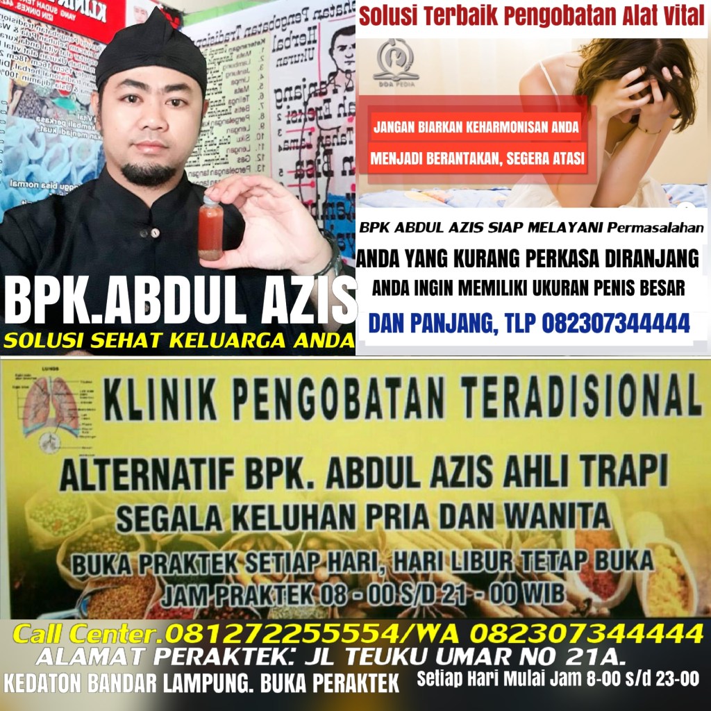 Klinik Pengobatan Alat Vital Ditangani Langsung Oleh Pakarnya BPK Abdul azis, Mampu Mengobati Segala Permasalahan Pasutri Yang Kurang Percaya Diri Karena Ukuran Penis Anda Kecil Kurang Maksimal Dan Anda Tidak Perlu Diragukan Lagi Tentang Kekurangan Keperkasaan Anda, Kami Akan Membantu Anda Secepatnya, Untuk Menambah UKURAN PENIS ANDA Bisa Menjadi BESAR DAN PANJANG KUAT KERAS TAHAN LAMA DIRANJANG Dan Pengobatannya Secara Alamiah Asli Tradisional+Ramuan Herbal, Dan Metode Diurut Dengan Demikian Menggunakan MINYAK JAKKAR KHUSUS UNTUK TINGKAT KEPUASAAN Pria, Pengobatan BPK Abdul azis Yang Terbaik Dan Yang Pertama Membuka Peraktek Di KEDATON BANDAR LAMPUNG, Dan Sudah Berpengalaman Tidak Asing Lagi Keahliannya Di Seluruh Indonesia