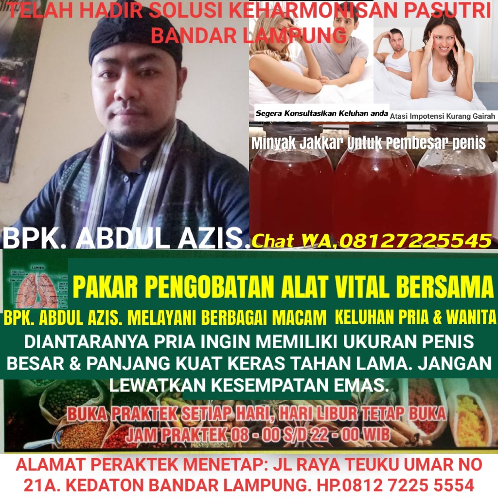 KABAR GEMBIRA HOTT BERITA UNTUK KEHARMONISAN PASUTRI,,! SOLUSI TERBAIK SEPANJANG SEJARAH, HADIR PENGOBATAN VITALITAS BPK ABDUL AZIS, DI KOTA BANDAR LAMPUNG, DAN KAMI Memberikan PENGOBATAN ALAT VITAL UNTUK TINGKAT KEPUASAN SEKSUAL UNTUK ANDA Bagi Yang Bapak Ibu Yang Mengalami Masalah Dengan Seputar Vitalitas Kurang Percaya Diri, DISINI KAMI MENAWARKAN MINYAK JAKKAR Khususnya Untuk Vitalitas dan Rumah Tangga Anda Menjadi HARMONIS,!! Dan Di Klinik Pengobatan BPK Abdul azis Banyak Manfaat Nya Bagi Yang Berkeinginan.